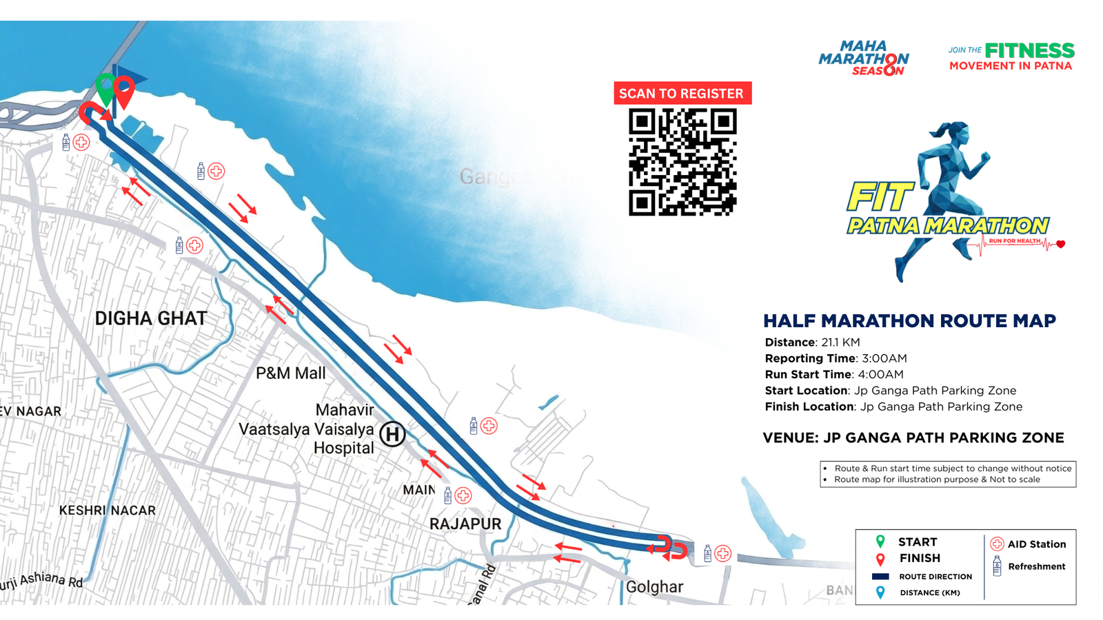 Fit Patna Marathon is Patna’s premier mass-participation running event dedicated to promoting fitness, wellness, and community unity. More than just a race, it is a movement that encourages people of all ages to adopt a healthier lifestyle while celebrating the spirit of sportsmanship and civic pride.